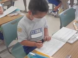 「9+4のような答えに繰り上がりがある計算の仕方を覚えること」をテーマに学習していました。子どもたちは、「9はあと1で10」「4を1と3に分ける」「9と1で10」「10と3で13」と唱えたり書いたりして覚えていました。ノート記録の仕方も上手になってきています。