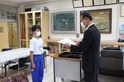 全校朝の会(放送)の際に、出品者及び入賞等について紹介し、昼の時間に校長室にて表彰を行いました。夏休みの課題として全校生が取り組み、学級から1作品を出展したコンクールで、相馬地方学校図書館協議会長から入賞者等への賞状となります。6名の児童の皆さん、改めておめでとうございます。そして、全校児童の皆さんの「夏休み課題への取組のよさ」が大変素晴らしいです。