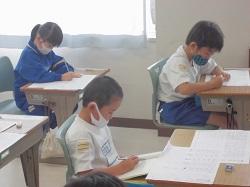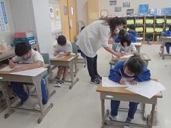 「ていねいに かたかな を書くこと」をテーマに活動していました。子どもたちは、かたかなの手本を真似ながら、一文字一文字をていねいに書いていました。プリントに向かう姿は真剣そのものでした。