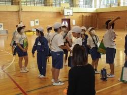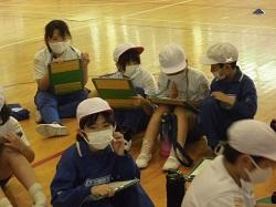「3チームに分かれて、ルールを守ったり仲間と協力したりしながらゲームをすること」をテーマに活動していました。子どもたちは、これまでの練習の成果を生かしてゲームを楽しんでいました。学習の振り返り(まとめ)の場面では、チームや友だちのよさを見つけたり、次回のゲームに向けて「攻守の作戦」を立てたりしていました。