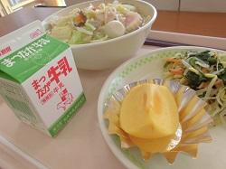 今日の献立は「とんこつラーメン(卵)」「牛乳」「ちゅうかあえ」「かき」でした。