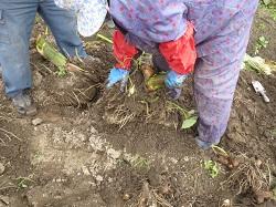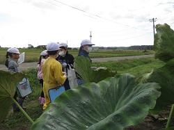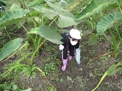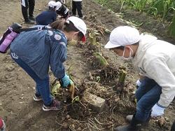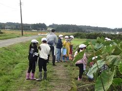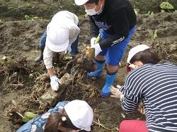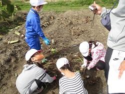 「農家の仕事の内容や工夫を聞いたり、作物の収穫を体験したりすること」をテーマに活動していました。子どもたちは、さといもの生長やその様子を観察しながらも、その収穫を心と体で体験していました。体験以外にも、里いも等のお土産までいただきました。学習活動への御協力、大変ありがとうございました。