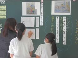 「思いやりとはどんなことなのか考えること」をテーマに学習していました。子どもたちは、教材から思いやりについて考えるとともに、これから友達のために自分でできることについて考えていました。