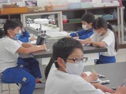 「空気は温められたり冷やされたりすると、体積が変わるのかどうかを調べること」をテーマに学習していました。子どもたちは、温める実験と冷やす実験を協力して行い、グループと全体で結果をまとめていました。