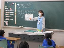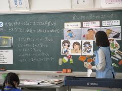 「すききらいをせずに食べるためにはどうすればよいか」をテーマに学習していました。子どもたちは、苦手な物を食べないとどうなるのかを含めて、食べ方の重要性について学びました。