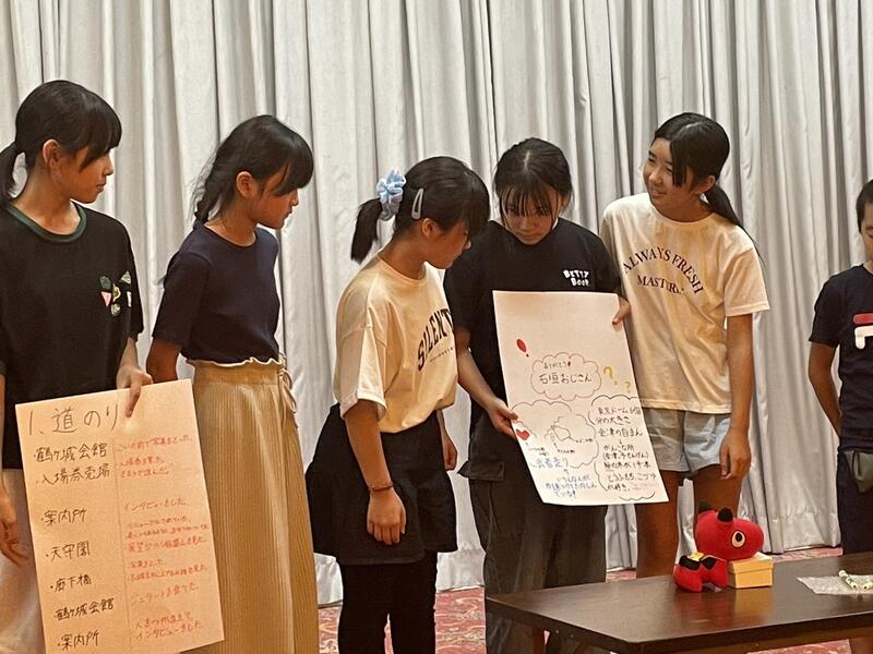 2023年9月14日 18時17分飯盛山 鶴ヶ城 それぞれ学んできたことをプレゼンし、互いに聴き合い、感想を述べ合いました。