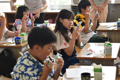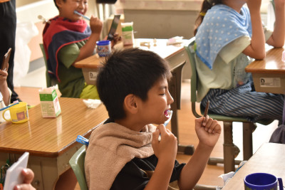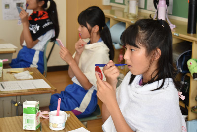 子どもたちは、自分の歯や歯茎の様子を確認したり、磨き残しをチェックして隅々まできれいに磨いたりと、歯と歯茎の健康についてしっかり学習することができました。