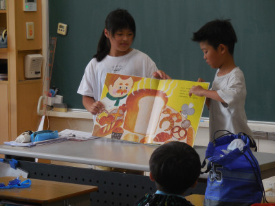 1・2年、3・4年はブックランド委員会(図書委員会)の児童が読み聞かせをし、5・6年は担任が読み聞かせをしました。