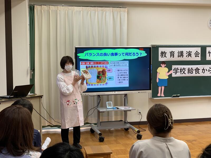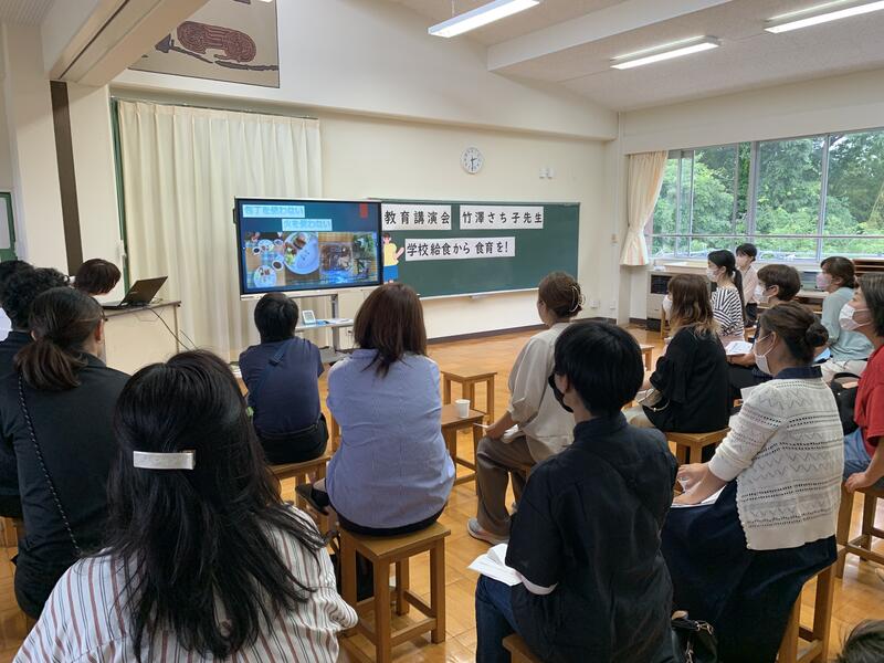 授業参観の後は,教育講演会。原町二小栄養士の竹澤さち子先生にご講演いただきました!