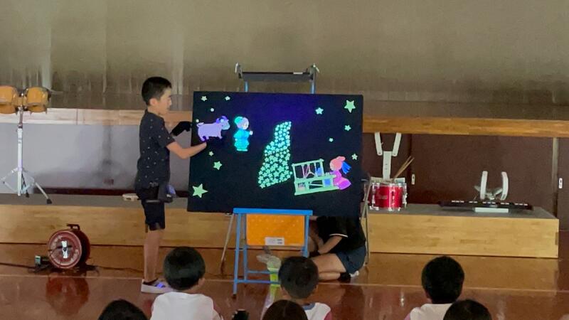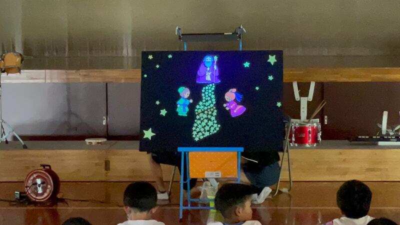 まずは、『七夕』のお話。パネルシアターで。魅力的に。