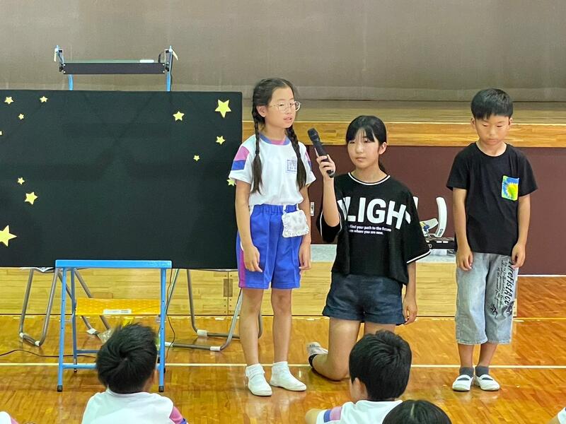 「せっかくの七夕集会を、どうせやるなら楽しく盛り上げたい!」という思いから、力を合わせて頑張りました。時にぶつかり合いながら迎えた本番。全校生が去った体育館で撮った記念写真。その時の気持ちは、やり遂げた君たちだけが味わえるんだよね。