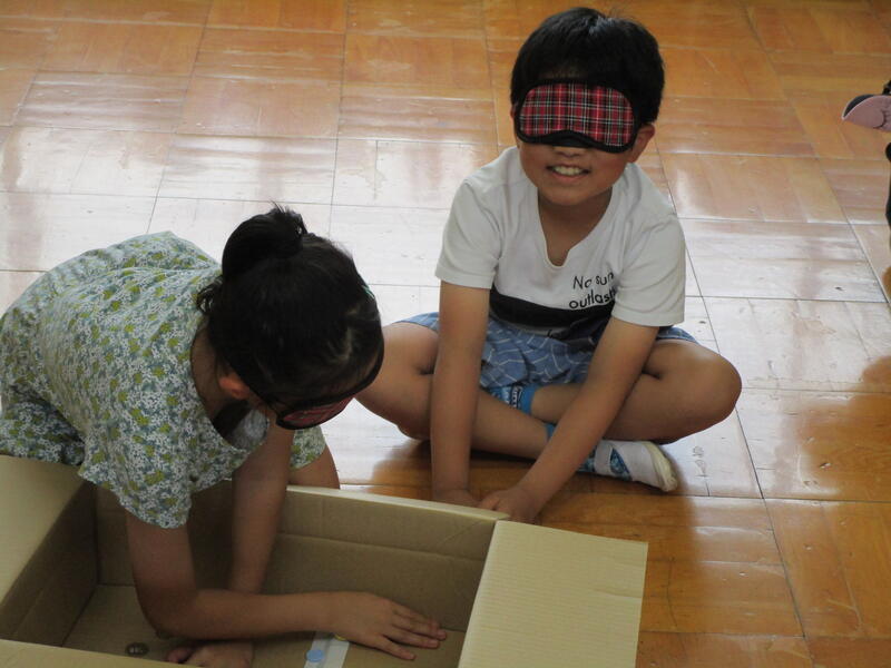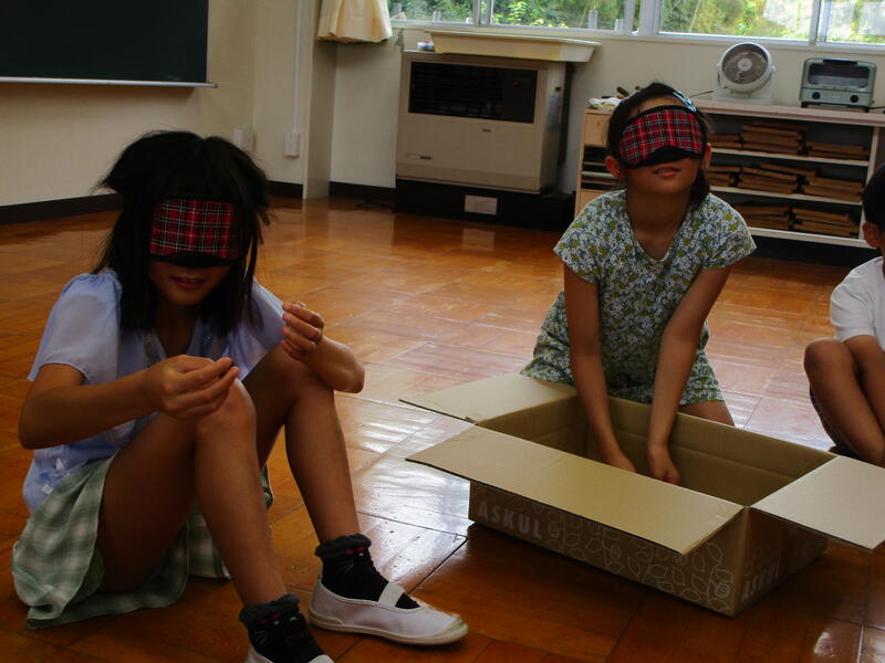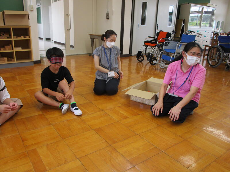 4年生。5校時目は,福祉協議会の方々においでいただき,体験活動に取り組みました。