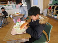 2学期最後の給食は,『ピザパン』。おいしくいただきました。