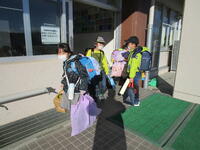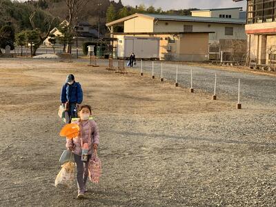重い荷物を持って,元気に昇降口へ向かっています!