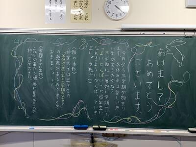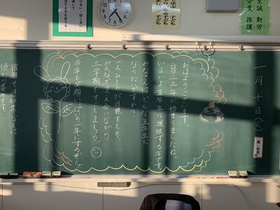 さて,教室には・・・ 黒板に,担任からのメッセージが・・・。