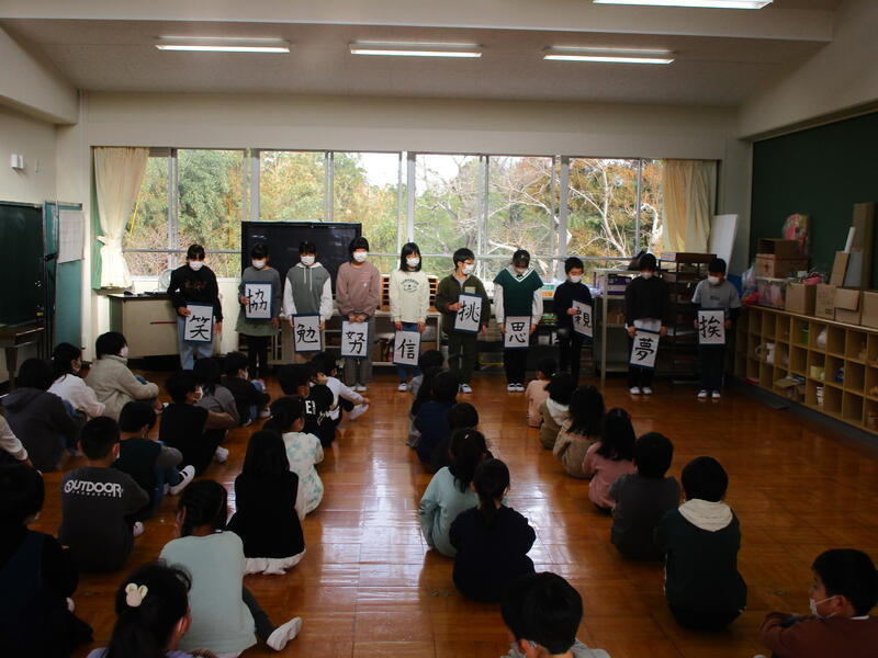5年生は今年頑張ることを漢字一文字にして,全員が発表しました!