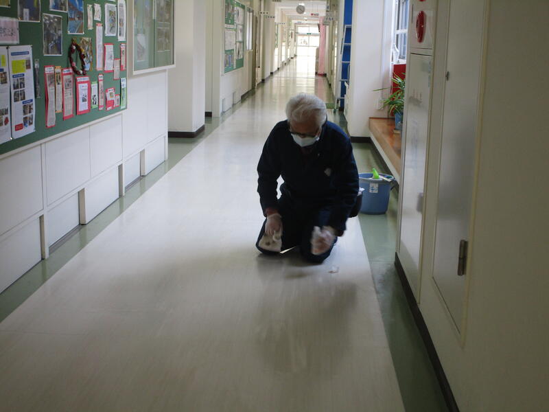 用務員の馬場先生は,今日も学校をきれいにしてくれていました。