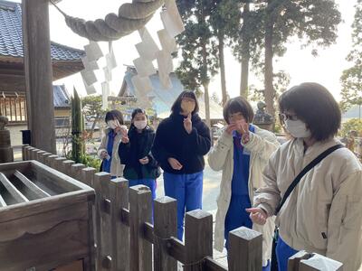 太田神社へお参り。学校の飾りを代表しておさめてもらいました。