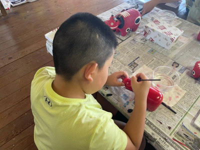 2025年7月3日 09時44分予定通りに会津藩校日新館にて赤べこの絵付け体験を行っています。