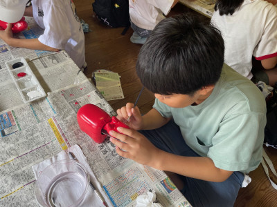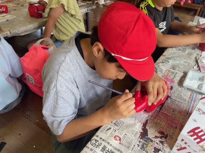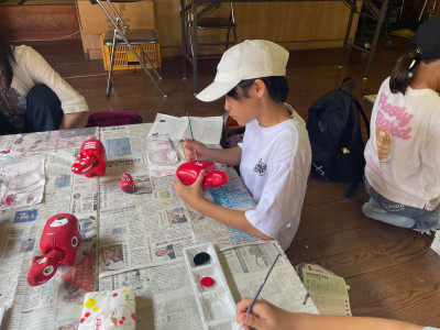 それぞれ、思い思いにオリジナルの赤べこの作成に真剣に取り組んでいます。