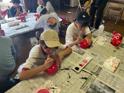 予定通りに会津藩校日新館にて赤べこの絵付け体験を行っています。