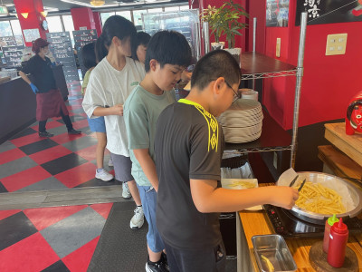 このような場で5年生が張り切らないはずがありません。思う存分食事を楽しみました。