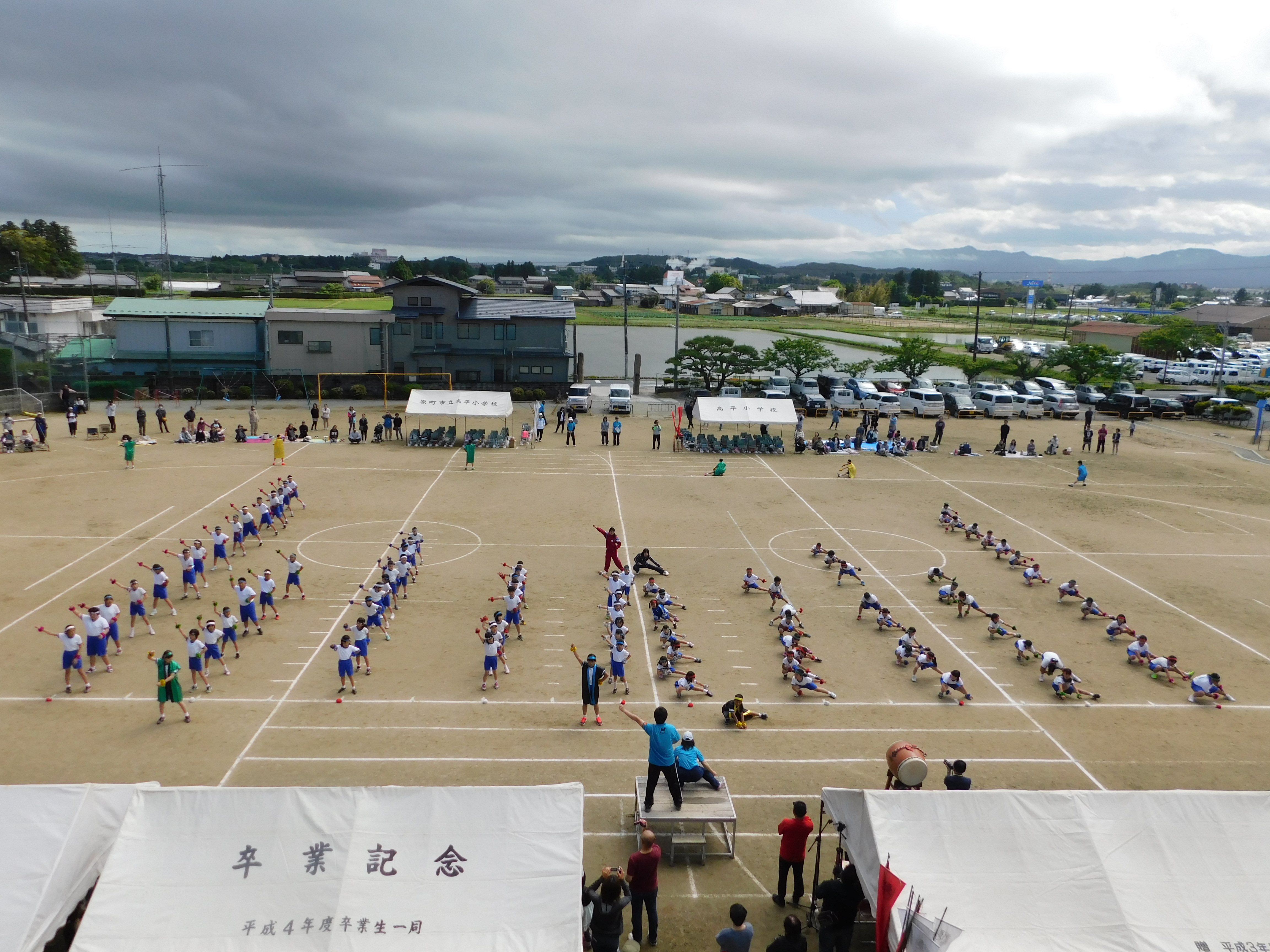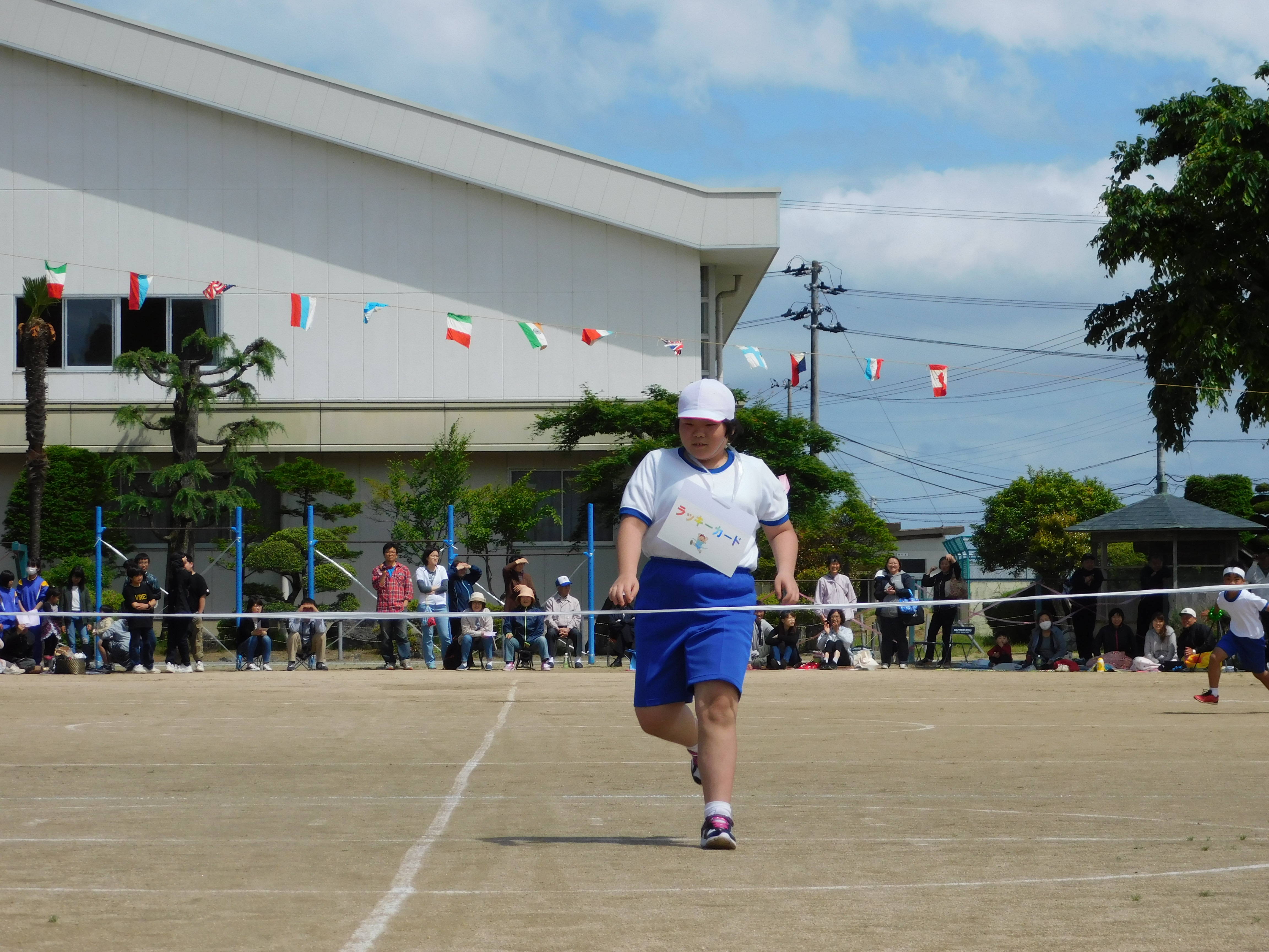 南相馬市では、前日夜から雨が降っており、体育館での開会となりました。本校の校庭は比較的水はけが良く、午後は晴れる予報であったことから、午後に校庭で種目を行うことを見越し、プログラムの順序を急遽変更(午前に団体種目・チャンスレース、午後に個人走・リレー)しました。