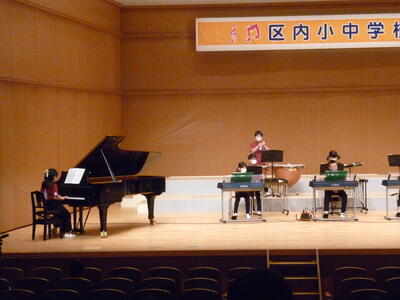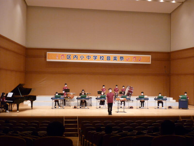 2021年10月15日 13時23分本日,南相馬市民文化会館大ホールで「令和3年度 原町区小中学校音楽祭」が2年ぶりに行われました。コロナ感染防止のため,昨年度は中止。今年度は無観客での実施となりました。原町区の全小中学校から5年生や吹奏楽部が参加し,どの学校も美しい音色を奏でていました。本校からは5年生14名が久保木先生と参加し,「(合奏)フェイヴァリット・メドレーⅡ」を披露しました。3部構成のメドレーで,どれもみんなが知っている曲が多く,聴いている児童も体を揺らしながら聞いていました。5年生はずっと練習を重ね,14名以上の音量を出すことができ,聞いていた人をきっと感動させたに違いあります千。5年生の皆さん,久保木先生,本当にご苦労様でした。