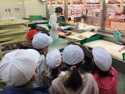 2021年10月18日 14時13分3年生が社会科の学習で,フレスコキクチを見学してきました。お店で働いている人はどんな仕事をしているのか,お惣菜などはどのようにして作られているのかを説明していただきました。お家の人と来たときとはまた違ったところを見ることができ,とても喜んでいました。美味しいお寿司もいただきました。今日,見学してきたことをこれからの授業でまとめていきます。もちろん,お礼の手紙を書くことも忘れません。