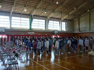 2023年3月22日 10時43分先日,在校生の「修了式」の予行を行いました。一度も全体で練習したことがありませんでしたが,どの学年も素晴らしい返事と態度で臨むことができました。一年間の成長に驚かされますね。