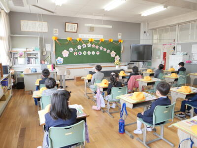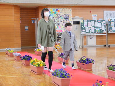 2023年4月6日 15時45分本日,令和5年度の入学式を行いました。今年度は18名の1年生が入学し,入場は6年生のお兄さんとお姉さんと一緒でした。担任の先生に名前を呼ばれると大きな声で返事ができ,とっても元気な1年生でした。明日から小学校生活が始まります。元気に登校してくるのを待っています。