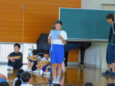 2023年6月21日 13時53分本日,「いじめダメ集会!」を全校児童で実施しました。いじめ撲滅のスローガンを一人一人考え,「いじめ」に対する意識を高めるとともに,友達に対する言葉遣いや思いやりを持って行動する大切さについて考え,協力して学校生活をしようとする態度を育てることを目的としています。各学年代表児童1名ずつのスローガンの発表がありましたが,しっかりとした内容でした。最後に生徒指導の先生のお話しがあり,いじめのない高平小学校にすることを約束しました。