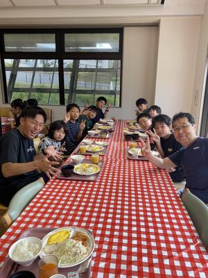 2023年7月5日 07時48分気持ちの良い青空の下での集いの後は、お待ちかねの「朝ご飯」です。