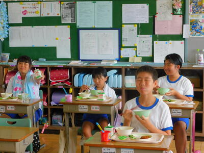 東日本大震災と原発事故の影響により、平成26年4月1日は,県内外に約45%の子どもたちが避難をしていました。令和7年度は,児童数107名,教職員数22名でスタートしました。令和7年度の重点目標は「見つけた!伝えたい!高め合おうよ!」です。重点目標達成のため,日々努力していきたいと思います。 教職員の合い言葉は「和」「輪」です。
