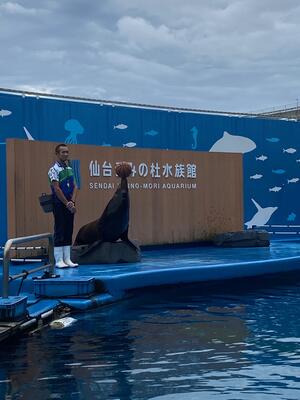 2023年9月22日 10時39分6年生が目的地に着き、早速イルカショーを楽しみました。