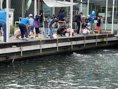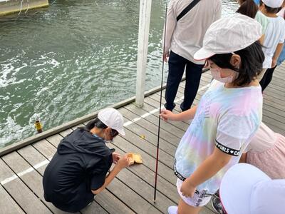 2023年9月22日 11時14分3・4年生の釣り体験ですが、順調に釣れているようです。