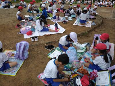 お昼ご飯の際にも、シートを敷く場所と時間を譲り合いながら食べました。