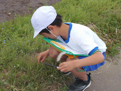 2年生は、生活科の時間に「学校の周り探検」に行ってきました。めあては、「季節の変化を見つけよう」でした。「4月までは、土しか見えなかった田んぼに、苗が植えてあります。」「冬には、葉っぱしかなかったのに、花が咲いています。」「冬にはいなかったテントウムシがいます。」など、季節の変化をたくさん見つけることができました。教室に戻ってからは、自分たちの発見をワークシートに丁寧にまとめました。