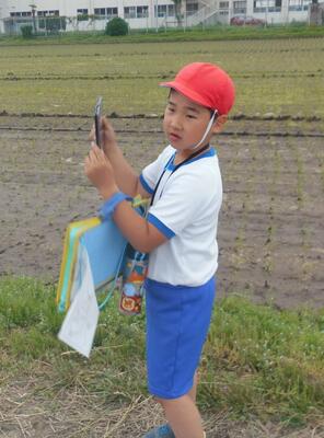 2024年5月27日 12時48分2年生は、生活科の時間に「学校の周り探検」に行ってきました。めあては、「季節の変化を見つけよう」でした。「4月までは、土しか見えなかった田んぼに、苗が植えてあります。」「冬には、葉っぱしかなかったのに、花が咲いています。」「冬にはいなかったテントウムシがいます。」など、季節の変化をたくさん見つけることができました。教室に戻ってからは、自分たちの発見をワークシートに丁寧にまとめました。