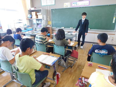 6月28日(金)、本日で遠藤大地先生の教育実習が終了しました。あっという間の4週間でしたが、児童との信頼関係をしっかりと築き、子どもたちを優しく指導してくださいました。最終日の本日は、放課後になってもたくさんの児童とお別れの言葉を交わしていました。別れは寂しいですが、次に会うときにはさらに成長した姿を見せてくれるものと期待しております。4週間、ありがとうございました!