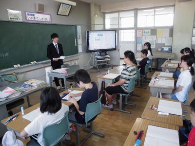「4週間という短い間でしたが、みなさんと一緒に学校生活を共に過ごせて、とても楽しかったです。これからも明るく元気に頑張ってください。」