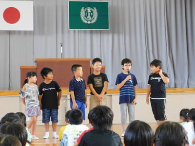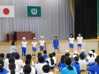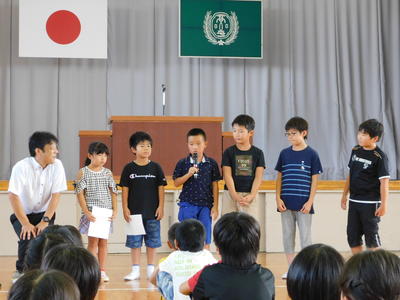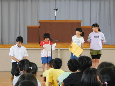 また、2,4,6年生の代表の児童から1学期の振り返りや夏休みの目標の発表がありました。勉強も運動もたくさん頑張った1学期。この頑張りを忘れずに、夏休みも更にパワーアップできることを期待しています。