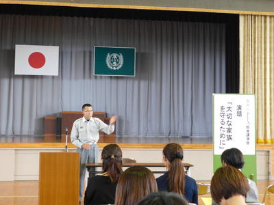 授業参観の後、体育館でPTA教育講演会が開かれました。南相馬消防署から2名の講師にお越しいただき、「大切な家族を守るために」という演題で救命に関する講話や心肺蘇生法についての講習をしていただきました。「心肺蘇生法は救命者を柔らかいマットに寝かせるのではなく、堅い床に寝せる」など、我々職員一同にとっても、今までの間違った認識を正す良い機会となりました。これからも定期的な確認を怠らず、大切な子どもたちを守っていきたいと思います。