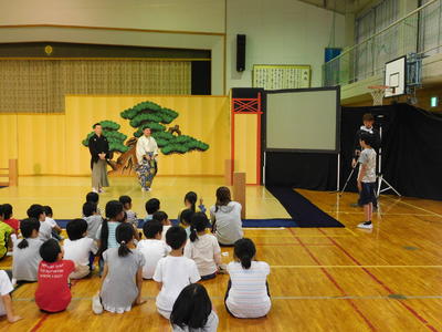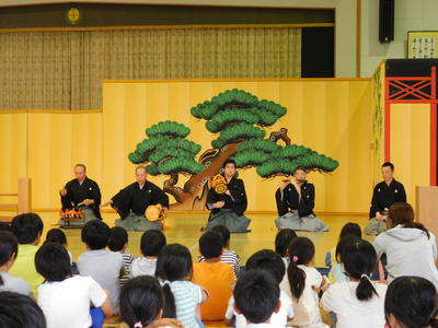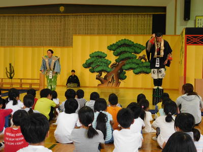 5・6時間目に文化芸術子ども育成事業として鑑賞教室が行われました。本日は、6月3日にワークショップで体験した能楽の本公演です。