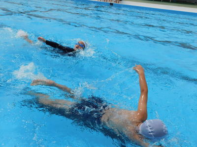 本日、3~6年生で水泳の授業を行いました。少し肌寒い中での授業でしたが、今年度はじめてのプールを楽しんでいるようでした。7月4日のプール開きで確認したプール使用のきまりをしっかりと守って、各自の水泳の目標に向かって練習し、目標を達成できるように頑張ってほしいと思います。