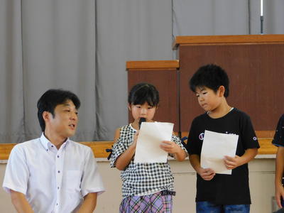 そして、1,3,5年生の代表の児童から夏休みの振り返りや2学期の目標の発表がありました。インタビュー形式の発表でしたが、夏休みの楽しかった思い出や2学期に向けての決意がしっかりと伝わってきました。代表の児童以外もそれぞれめあてをもって2学期をむかえたことと思います。今の気持ちを忘れずに、2学期も頑張っていきましょう!