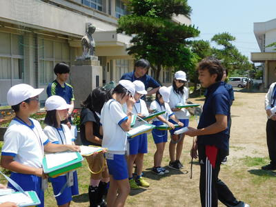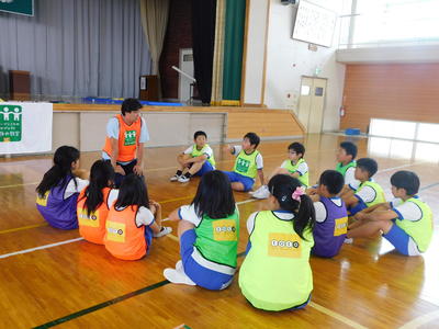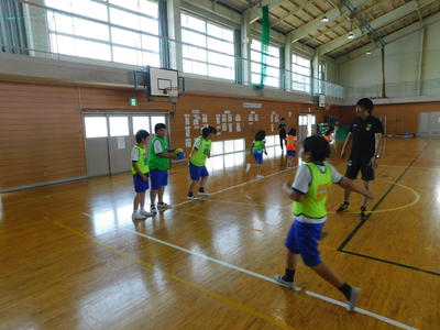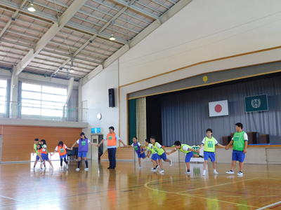 3校時目には、歩幅を合わせる運動やボールを運ぶ運動など今までやったことの無いような運動で体を動かしました。はじめてやる運動の難しさに苦しみながらも、ルールを覚え、話し合いを繰り返しながら上達していくことができました。1時間たっぷり体を動かした5年生たちは充実感や達成感を覚えながらスポーツに親しむことができました。