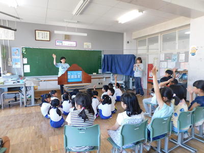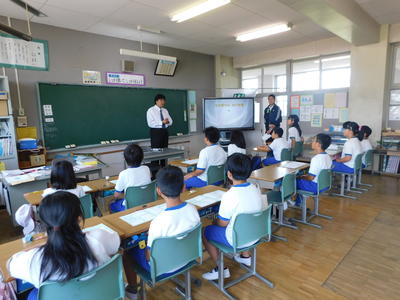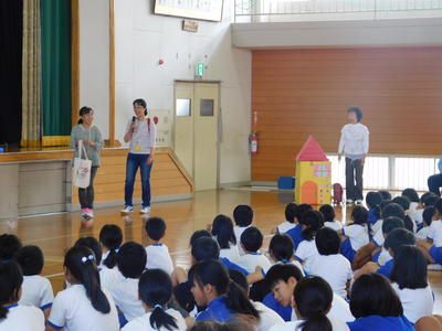 1・2年生は東日本大震災のことや原子力発電所について紙芝居やクイズで学習しました。1・2年生にとっては難しい内容ではありましたが、一生懸命考えることができました。
