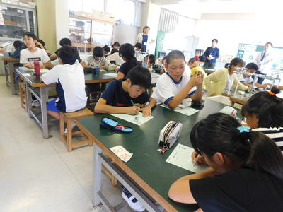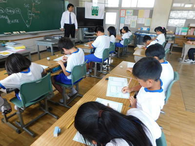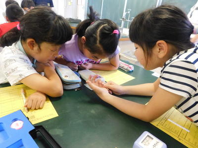 4年生は測定器を使って、アルファ線とベータ線の違いについて学びました。実験をしながらたくさんの疑問をもち、積極的に質問をすることで深い学びができました。授業後も時間ぎりぎりまで質問をして放射線についてもっと知ろうとしていました。