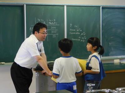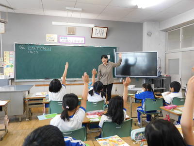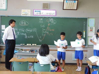 今回は2年生の道徳で「かむかむメニュー」という話について考えていきました。子どもたちは「かむかむメニュー」の話から、健康のためにもよくかんで食べることの大切さに気付き、自分たちの健康のためにどんなことができるかを一生懸命考えることができました。発表の時間には、よくかんで食べることの他にも、好き嫌いをなくすことやよく運動をすること、勉強をして頭も健康にすることなどたくさんの意見を交流することができ、2年生にとってとても有意義な時間になったことと思います。